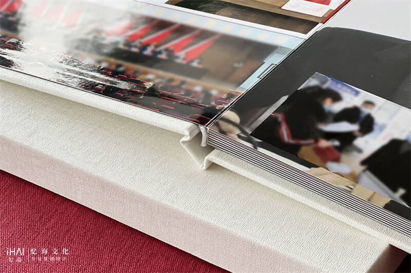 一本紀(jì)念相冊(cè)的品質(zhì),往往體現(xiàn)在內(nèi)頁(yè)的細(xì)節(jié)上。此次案例中,內(nèi)頁(yè)采用高質(zhì)量銅板紙印刷,并夾PVC板材加厚對(duì)裱,保證了相冊(cè)的硬度與耐久度。再加上蝴蝶對(duì)裱的精裝方式,使相冊(cè)可以180度平展開合,翻閱體驗(yàn)更加舒適順暢。這樣的工藝不僅保證了長(zhǎng)久保存價(jià)值,也讓相冊(cè)在使用中更顯檔次。